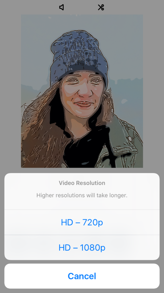 Olli can export 1080p video on iPhone 6 and up through the “…” export option.